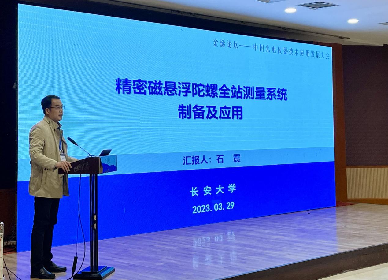 頒獎典禮后,召開了首屆“金燧論壇”——中國光電儀器技術及應用發展大會。團隊成員分別在測量儀器和計量儀器專場、分析儀器和工業自動化儀器專場、環境測試儀器和物理性能測試儀器專場,同與會專家學者開展了交流。石震副教授向大會匯報了團隊研究成果“精密磁懸浮陀螺全站儀”,并受到與會專家學者的一致好評。
