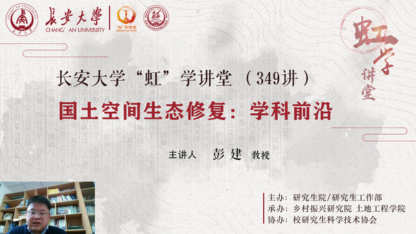 3月16日下午,由研究生院/研究生工作部主辦、鄉村振興研究院和土地工程學院承辦、校研究生科學技術協會協辦的“虹”學講堂第349講以線上形式舉行。北京大學彭建教授作了題為“國土空間生態修復:學科前沿”的報告,相關學院共200余名師生聆聽講座。
