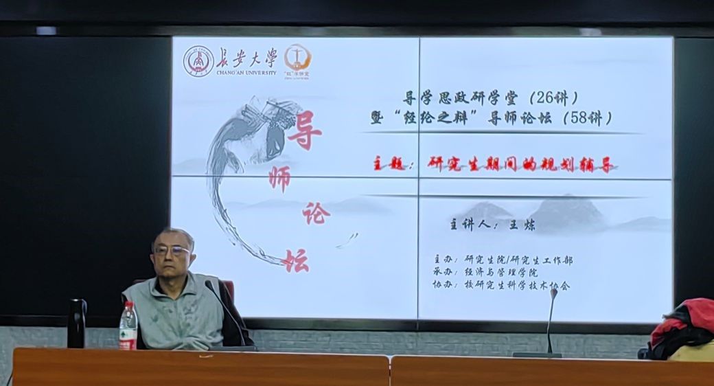 10月31日晚,由研究生院/研究生工作部主辦、經濟與管理學院承辦、校研究生科學技術協會協辦的導學思政研學堂第26講暨“經綸之辯”導師論壇第58講在南校區北院經管學院樓407舉辦。長安大學王煉教授作題為“研究生期間的規劃輔導”的報告,經濟與管理學院副院長馬飛教授主持,相關學院共100余名師生參加講座。