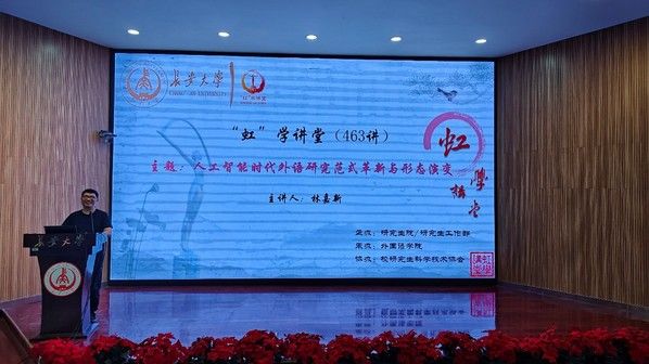 5月20日上午,由研究生院/研究生工作部主辦、外國語學院承辦、校研究生科學技術協會協辦的“虹”學講堂第463講在南校區東院伯聲報告廳順利舉辦。西北工業大學林嘉新教授作了題為“人工智能時代外語研究范式革新與形態演變”的報告,外國語學院王紅孝教授主持,相關學院共180余名師生參加講座。