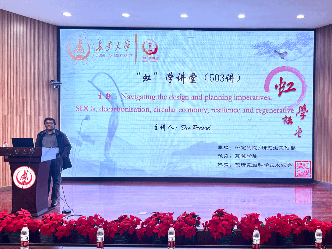 11月13日上午,由研究生院/研究生工作部主辦、建筑學(xué)院承辦、校研究生科學(xué)技術(shù)協(xié)會(huì)協(xié)辦的“虹”學(xué)講堂第503講在南校區(qū)東院伯聲報(bào)告廳舉辦。澳大利亞科技與工程院院士Deo Prasad作題為“Navigating the design and planning imperatives: SDGs, decarbonisation, circular economy, resilience and regenerative”的報(bào)告,建筑學(xué)院副院長(zhǎng)余侃華主持報(bào)告會(huì),相關(guān)學(xué)院共190余名師生參加講座。