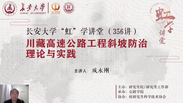 4月2日晚,由研究生院/研究生工作部主辦、公路學院承辦、校研究生科學技術協會協辦的“虹”學講堂第356講以線上講座形式舉行。四川城鄉發展設計工程公司教授級高級工程師成永剛作了題為“川藏高速公路工程斜坡防治理論與實踐”的報告,相關學院共400余名師生參加講座。