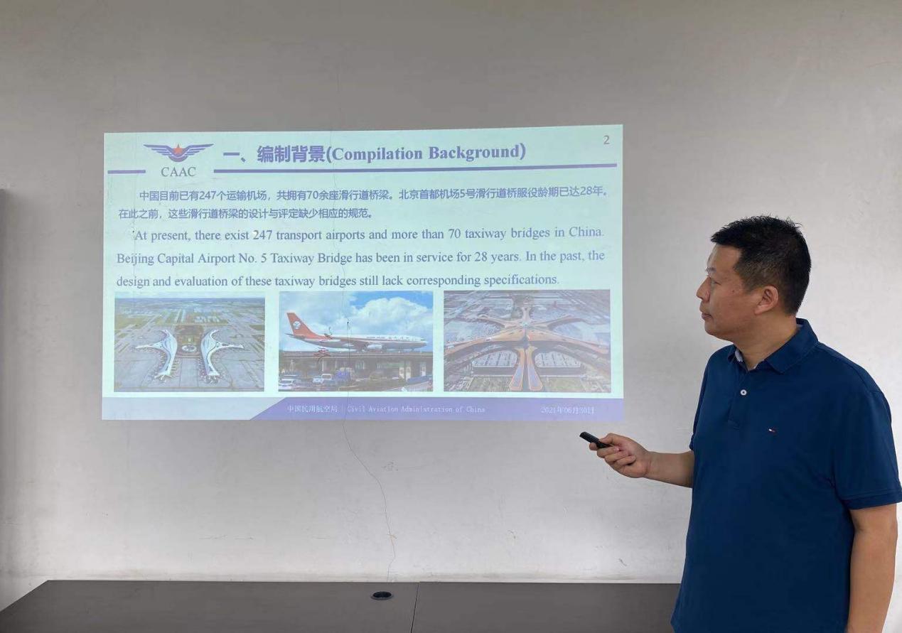 閆磊副教授介紹了中國機場橋梁的設計、檢測和評定情況,以及《民用機場飛機荷載橋梁設計指南》《民用機場飛機荷載橋梁荷載試驗指南》和《民用機場飛機荷載橋梁技術狀況評定指南》三部民航標準的主要內容,并提出了關注在役飛機橋梁運行安全和將相關標準在ICAO立項兩項倡議。