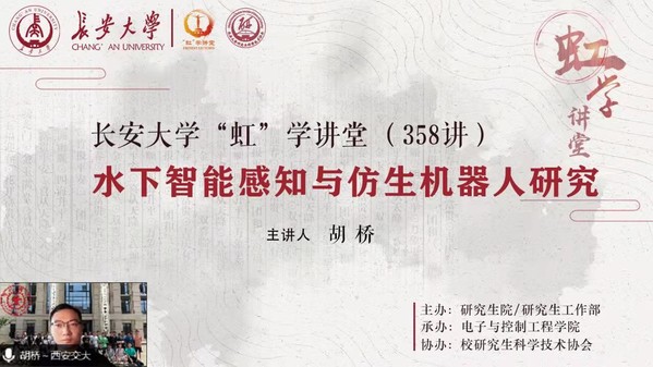 4月8日下午,由研究生院/研究生工作部主辦、電子與控制工程學(xué)院承辦、校研究生科學(xué)技術(shù)協(xié)會(huì)協(xié)辦的“虹”學(xué)講堂第358講以線上講座形式順利舉辦。西安交通大學(xué)胡橋教授作了題為“水下智能感知與仿生機(jī)器人研究”的報(bào)告,電子與控制工程學(xué)院段晨東老師主持講座,相關(guān)學(xué)院共350余名師生參加講座。