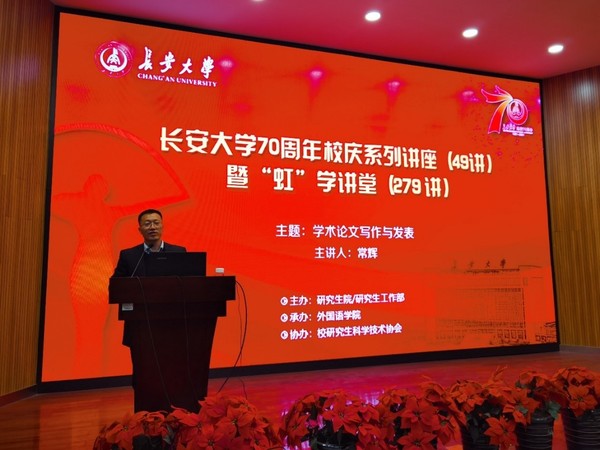 4月2日下午,由研究生院/研究生工作部主辦、外國語學(xué)院承辦、校研究生科學(xué)技術(shù)協(xié)會協(xié)辦的長安大學(xué)70周年校慶系列講座(49講)暨“虹”學(xué)講堂(279講)在南校區(qū)東院伯聲報告廳順利舉辦。上海交通大學(xué)外國語學(xué)院常輝教授作了題為“學(xué)術(shù)論文寫作與發(fā)表”的報告,我校相關(guān)學(xué)院共計200余名師生參加了此次講座。