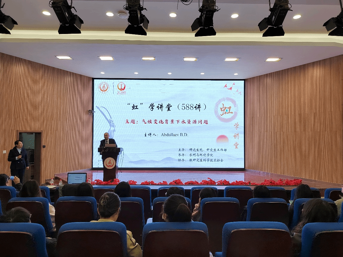 10月25日上午,由研究生院、研究生工作部主辦,水利與環(huán)境學(xué)院承辦,校研究生科學(xué)技術(shù)協(xié)會協(xié)辦的“虹”學(xué)講堂第588講在南校區(qū)東院伯聲報告廳舉辦。烏茲別克斯坦國立研究大學(xué)Abdullaev B. D.教授作題為“氣候變化背景下水資源問題”的報告,相關(guān)學(xué)院共160余名師生參加講座。