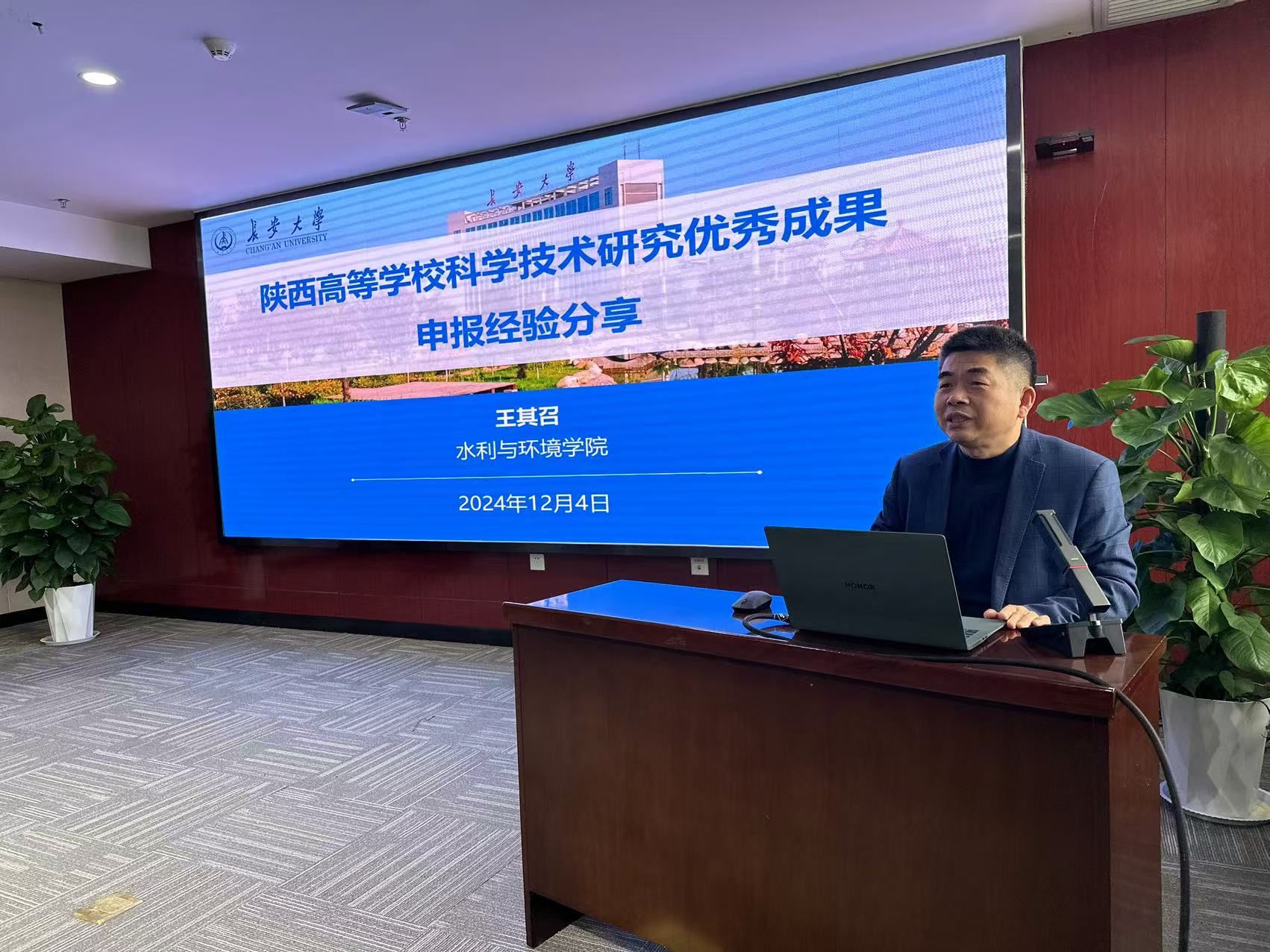 12月4日下午,科學研究院在北校區北辰樓第九會議室組織召開“2025年度陜西高等學校科學技術研究優秀成果”申報培訓及“面對面”咨詢會。水利與環境學院王其召教授作為2024年度獲獎代表進行了申報經驗分享。科學研究院成果與獎勵辦公室主任權立峰主持會議。