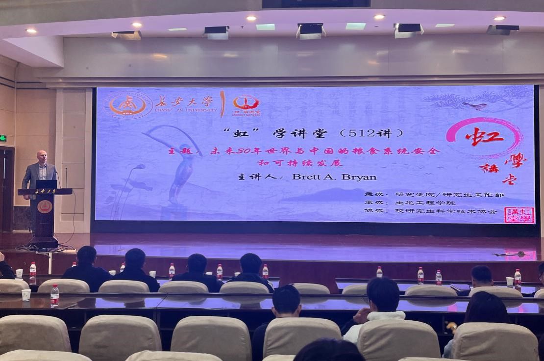 11月27日下午,由研究生院/研究生工作部主辦、土地工程學(xué)院承辦、校研究生科學(xué)技術(shù)協(xié)會(huì)協(xié)辦的“虹”學(xué)講堂第512講在南校區(qū)北院學(xué)術(shù)交流中心舉行。澳大利亞迪肯大學(xué)教授Brett A. Bryan作題為“未來30年世界與中國(guó)的糧食系統(tǒng)安全和可持續(xù)發(fā)展”的報(bào)告,土地工程學(xué)院黨委副書記李文主持報(bào)告會(huì),相關(guān)學(xué)院共200余名師生參加講座。