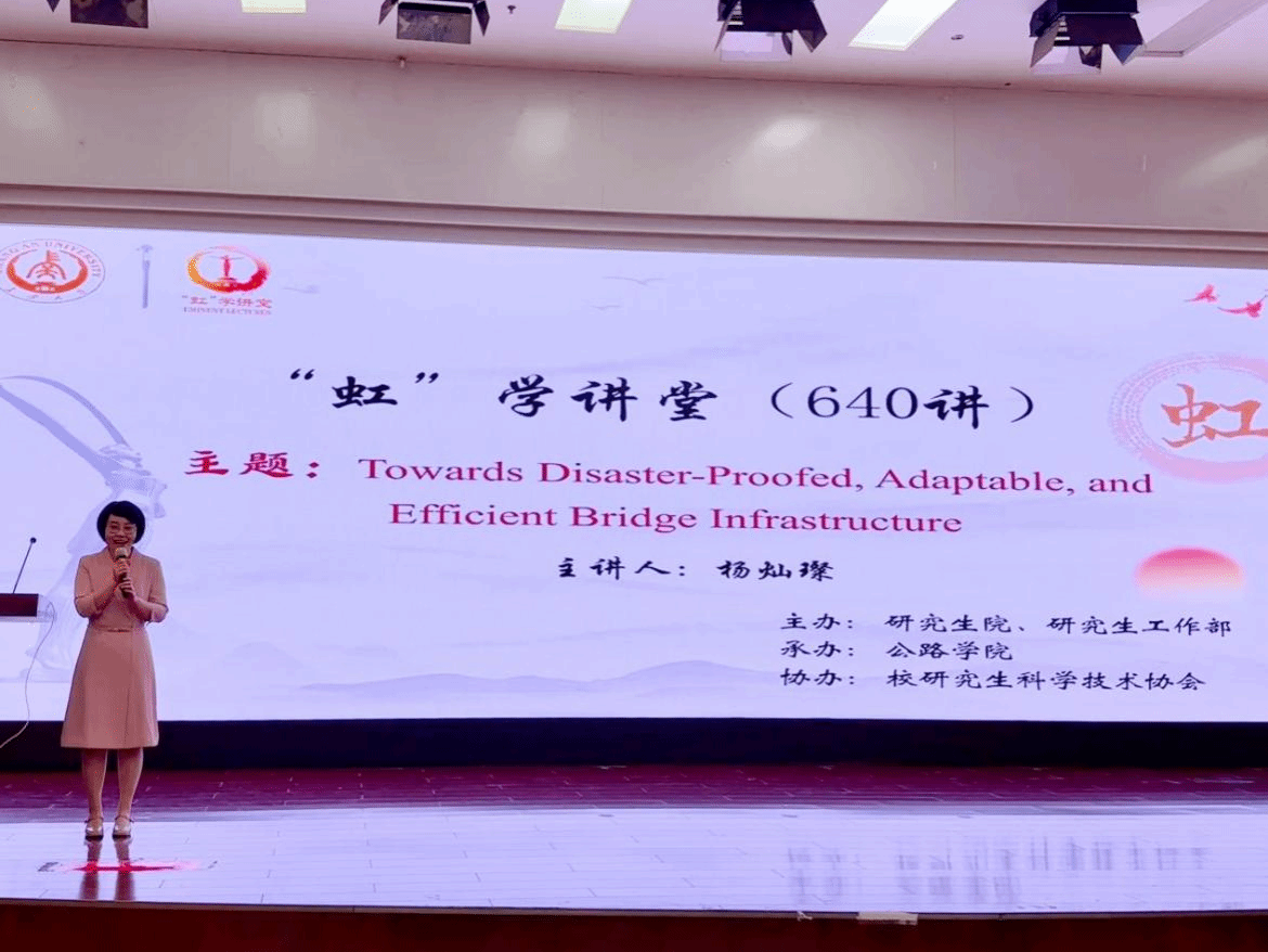 5月14日上午,由研究生院、研究生工作部主辦,公路學院承辦,校研究生科學技術協會協辦的“虹”學講堂第640講在南校區北院學術交流中心舉辦。加拿大麥克馬斯特大學楊燦璨副教授作題為“Towards Disaster-Proofed,Adaptable,and Efficient Bridge Infrastructure”的報告,公路學院郝鍵銘老師主持報告會,相關學院共210余名師生參加講座。