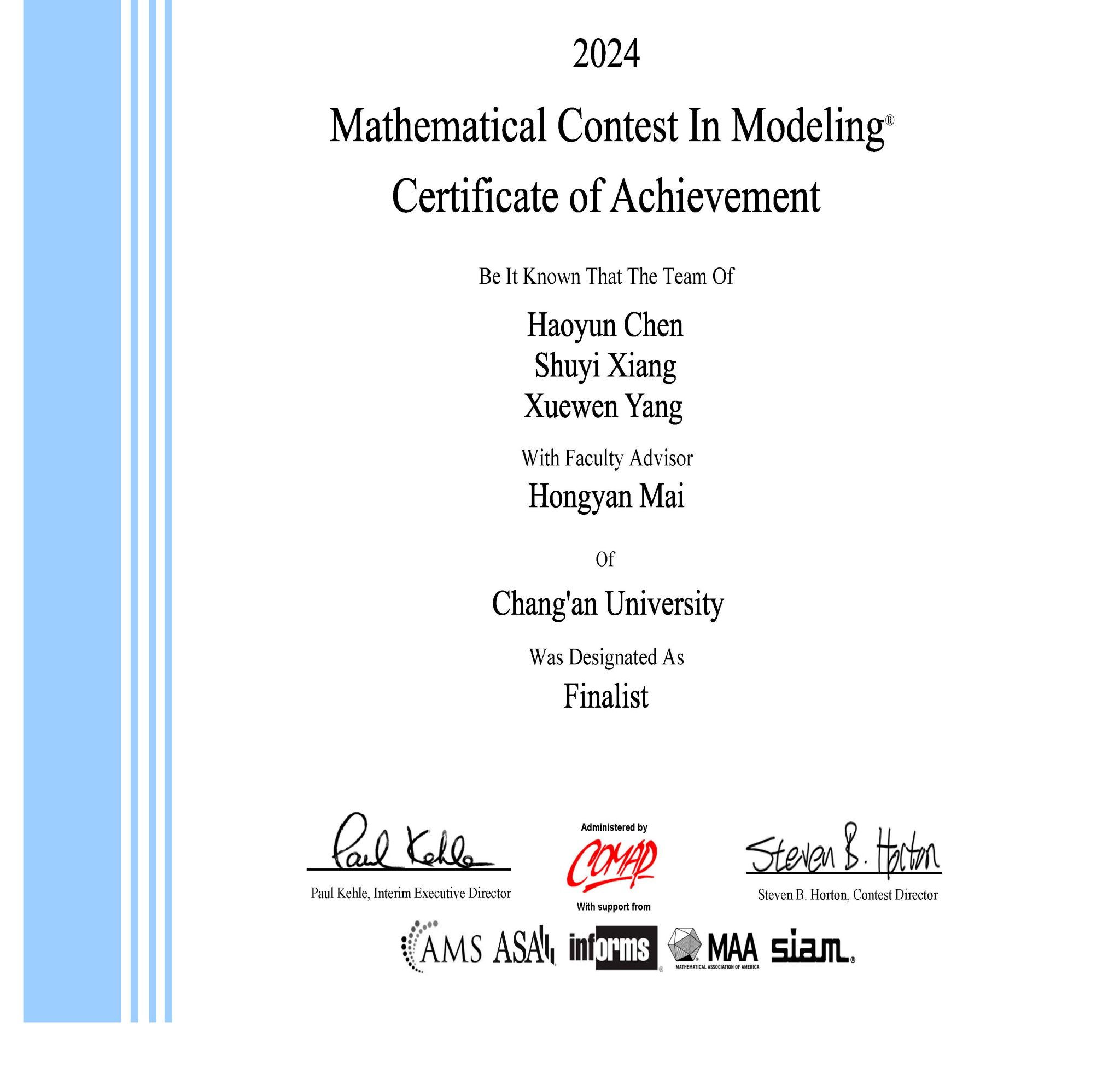 10/ 2024-05我校在2024年美國(guó)大學(xué)生數(shù)學(xué)建模競(jìng)賽中獲佳績(jī)